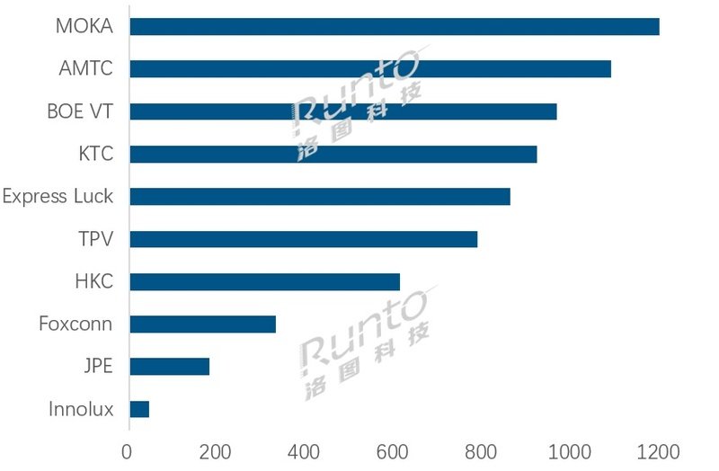 --Innolux(群创)的1月出货量排在专业代工厂序列的第十,仅有4.5万台,同环比双降两位数。基于此,洛图科技(RUNTO)近期将调整纳入Top10的统计成分。