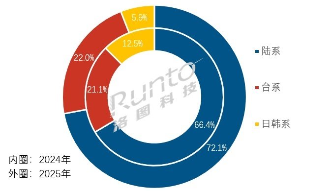 台系面板厂Innolux(群创)和AUO(友达)全年的合并市占率为22.0%,较2024年提升0.9个百分点,合并出货量同比增长8.0%。